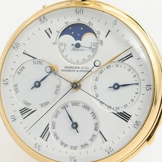 Marcks & Co. based in Bombay & Poona are mostly associated with Maharajah Watches, known for their highly complicated and ornate pocket watches decorated with sophisticated enamel and diamond settings, specially made for maharajas of the Indian subcontinent. They were the go-to choice for complication watches and enamel decorations, trusted by the Nizams and Maharajas.