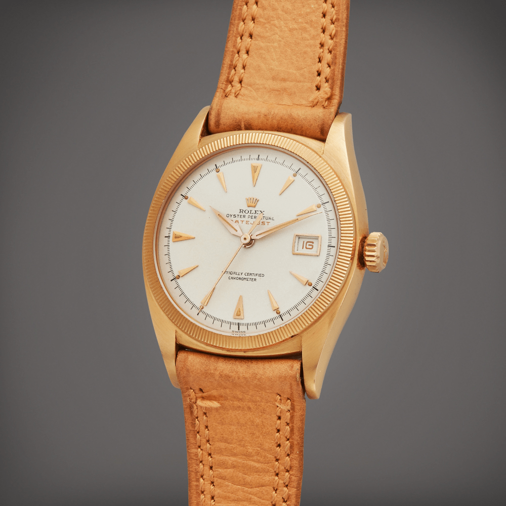 A similar Rolex Oyster Perpetual Ref. 3372 “Bubbleback” in its stock form.