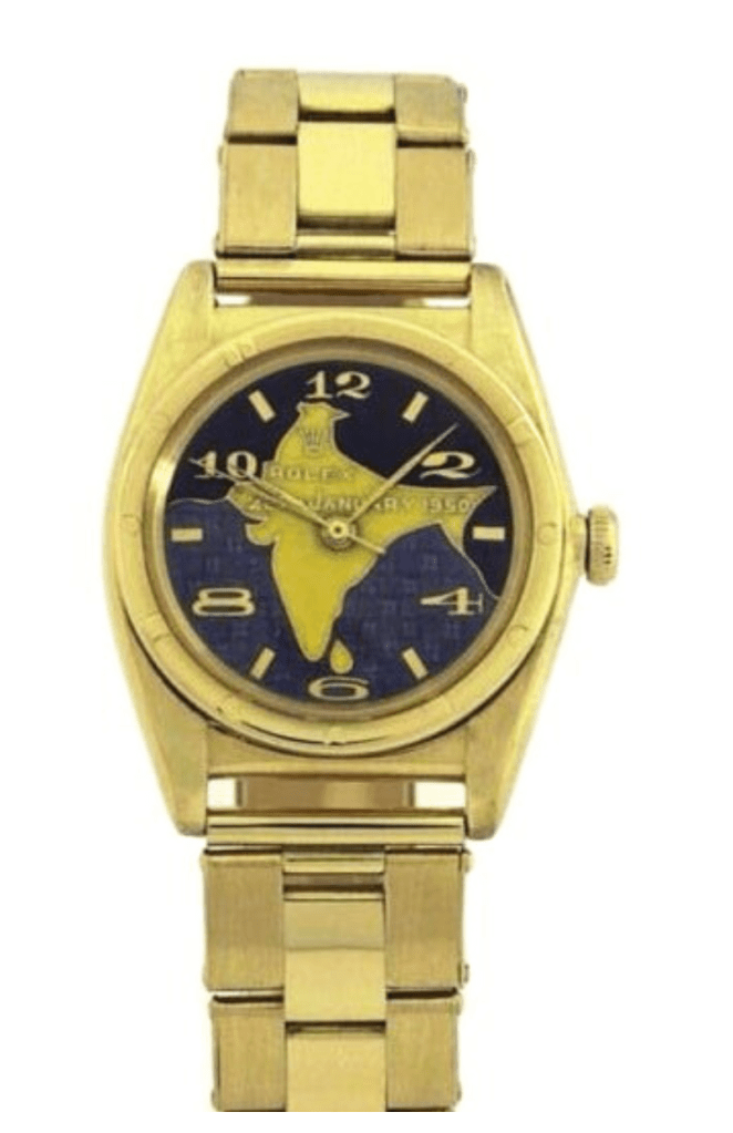 Nehru personally wore a Rolex Ref. – 6105 Oyster Perpetual Ovettone ‘Bubbleback’. There are many photos of him wearing this Rolex – none of them wearing the one with the map of India. No records to mention him wearing it. It was later gifted to someone & eventually sold, as mentioned above.
