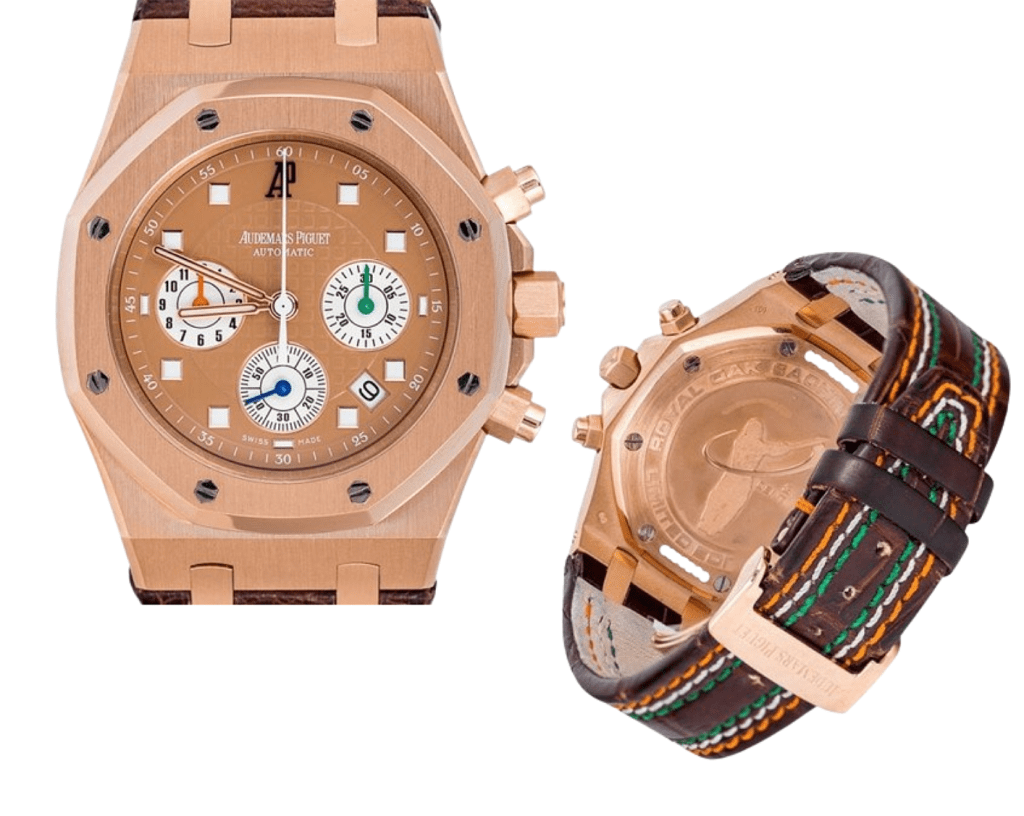 Anant Ambani and his team commissioned a set of 25 rose gold AP ROPCs as a gift to mark his wedding to his long-time girlfriend Radhika Merchant. The watch was given to his close friends and groomsmen including Bollywood actors Shah Rukh Khan and Ranveer Singh.