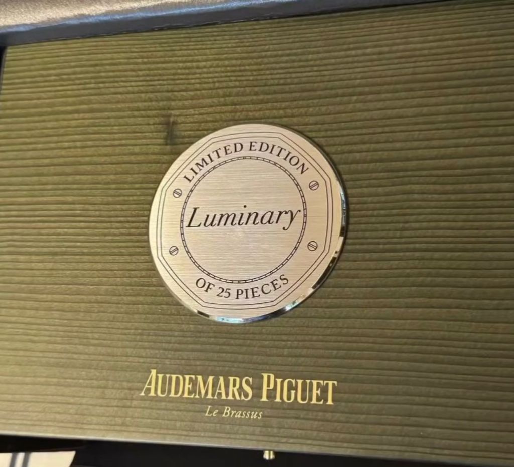 The box of Audemars Piguet Royal Oak ‘Luminary’, a limited edition of 25 pieces. the watch in question.