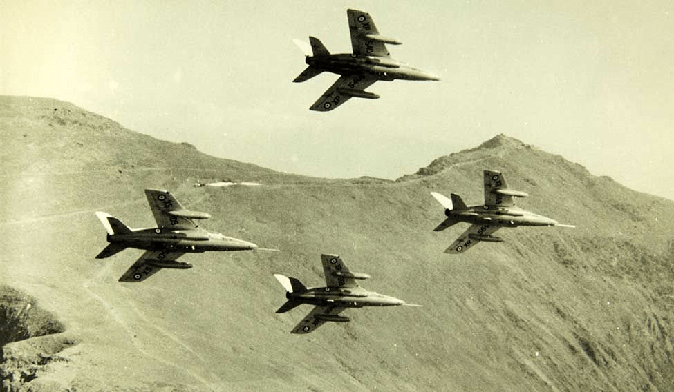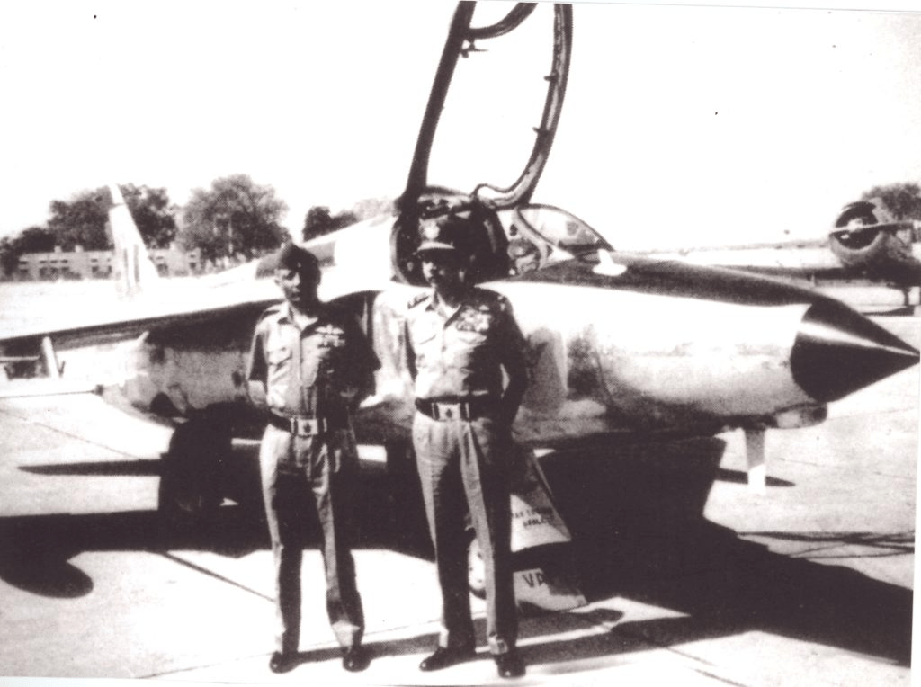 Squadron Ldr. Trevor Keelor (R) and Flight Lt. VS Pathania (L), the first ‘Sabre Slayers’ of the Indian Air Force, pictured with their Folland Gnat after an operational sortie during the Indo-Pakistan War of 1965.