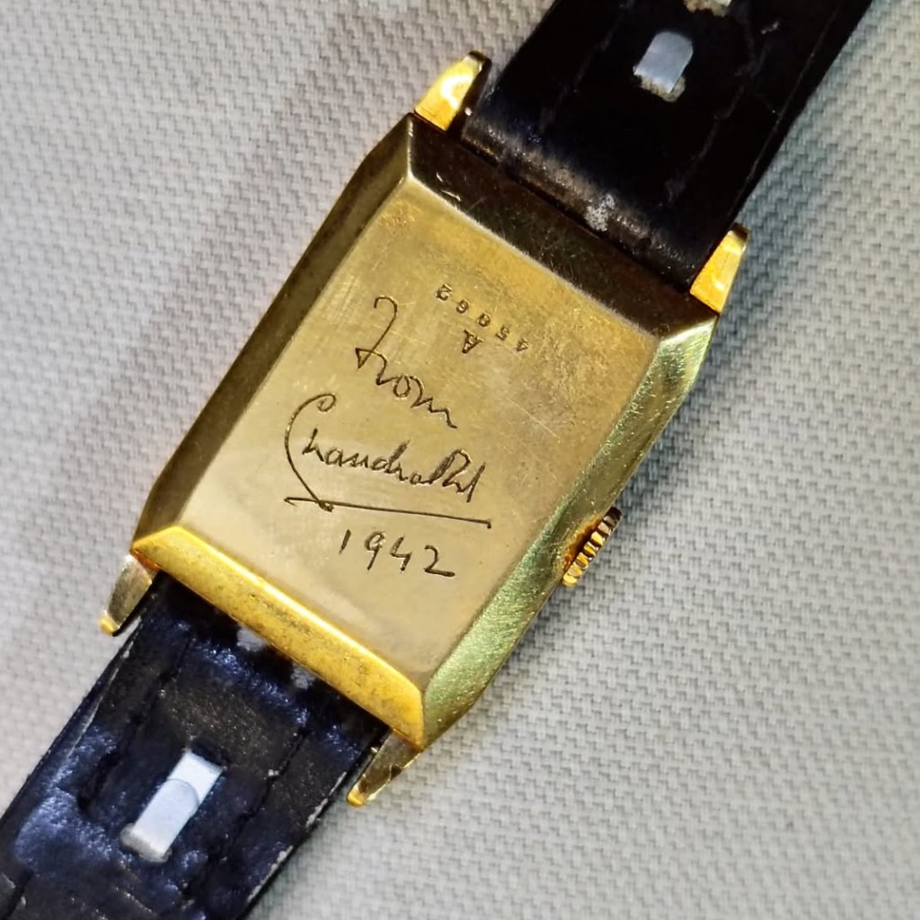 Our subject of focus, this watch with the inscription on back ‘From Chandrapal, 1942‘ tells a story. This watch was once owned by Rao Chandrapal Singh Jadon who was the chief secretary to Maharaja Sawai Man Singh II of Jaipur, during the state time of Jaipur (pre-independence). Rao Chandrapal Singh held many key positions in the court of Sawai Man Singh II and was an important figure in the Jaipur state.