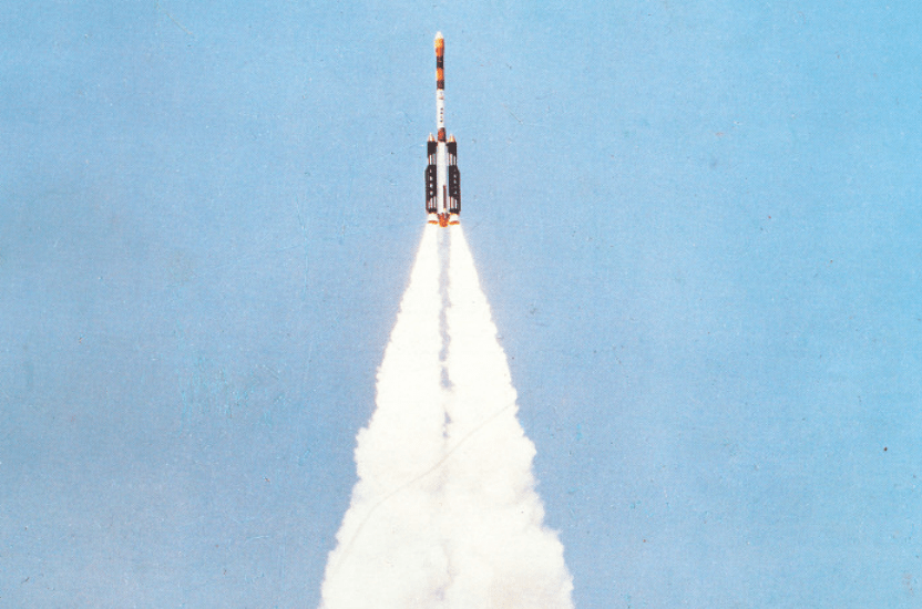 The HMT ISRO featuring the ASLV-D1 lift-off alongside the stretched Rohini satellite. Picture: Rudra Jog.